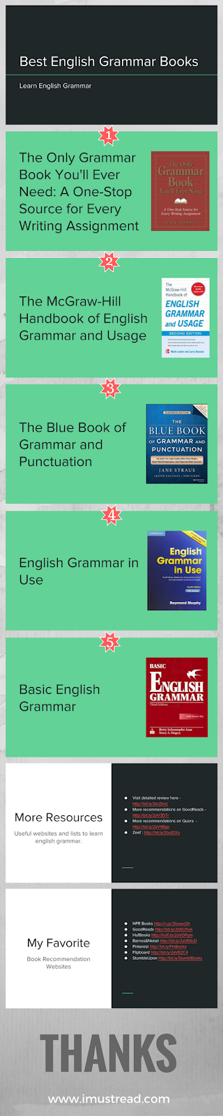 2. Thank you for sharing the five best English grammer books, I really needed it for my college presentation that I've been working on for the past two days, but it's still not complete, which is why I'm unable to take my online class. So now I need to seek help from an online class provider so that they can take my class and complete the presentation for me.