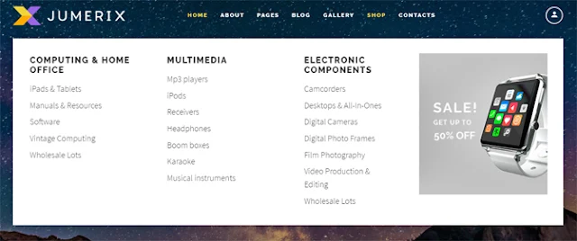 Meet the biggest trend for creating a website menu! This feature has become quite popular because it’s easy-in-use and looks amazing. Moreover, MegaMenu let you add some promo banners or images and make well-organized columns of your links.